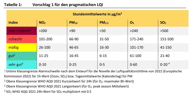 Aus dem UBA-Abschlussbericht zur Überarbeitung des Luftqualitätsindex: