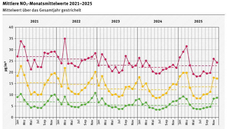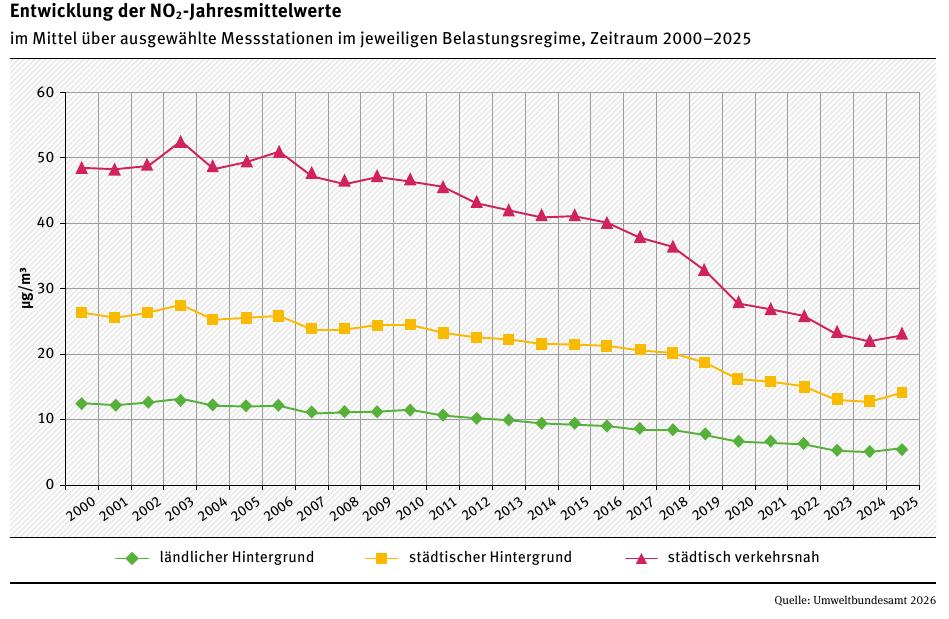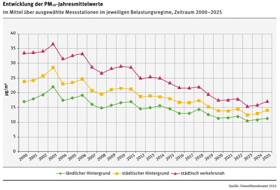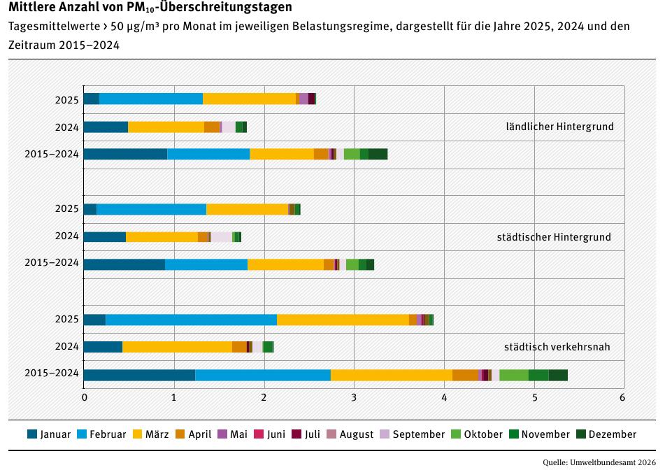 Umweltbundesamt: Auswertung Luftqualität 2025 (vom Februar 2026 – Downloadquelle) sowie Auswertung Luftqualität 2024