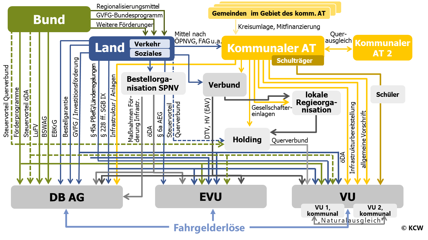 Die für den ÖPNV mit Abstand wichtigste staatliche Finanzierungsquelle sind die nach Artikel 106a GG i.n Verbindung mit dem Regionalisierungsgesetz bereitgestellten Regionalisierungsmittel. Diese wurden mit der Regionalisierung des SPNV [1993] eingeführt und dienen der Finanzierung des von den Ländern organisierten ÖPNV, „insbesondere“ der des SPNV.